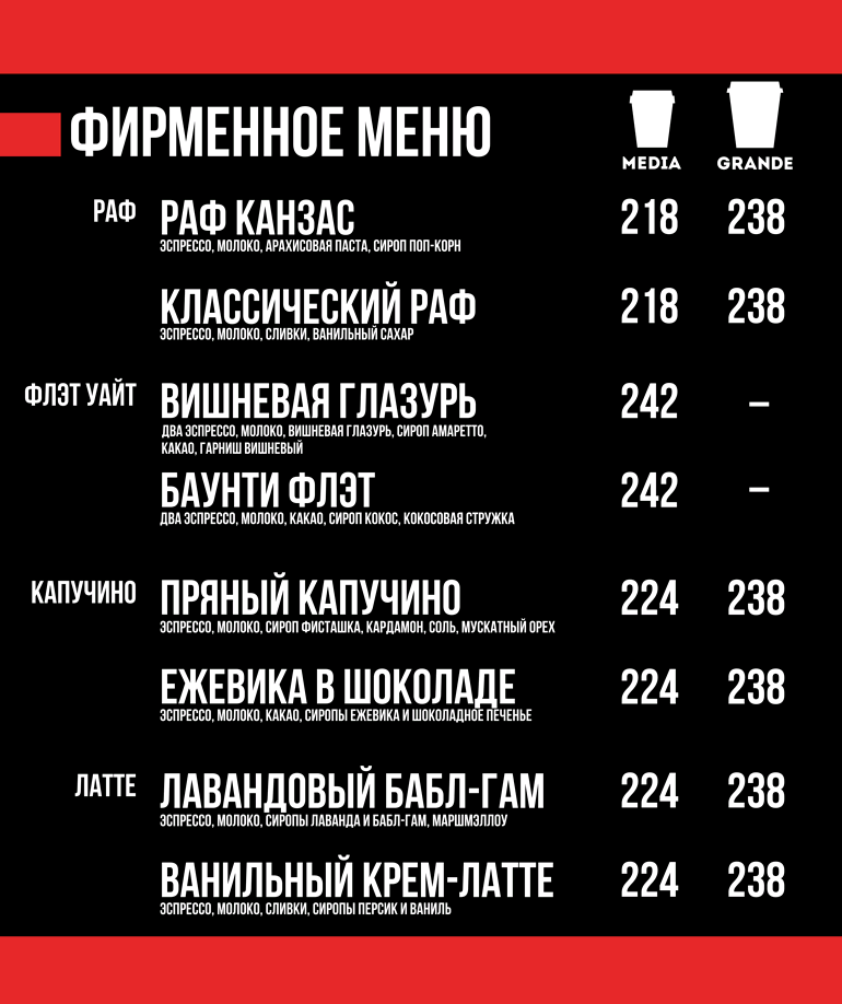 "ОН ОКРЫЛЯЕТ! Red Bull, нежные сливки и два вида сиропов создают идеальный баланс. Заряд энергии даже в самую жаркую погоду!"